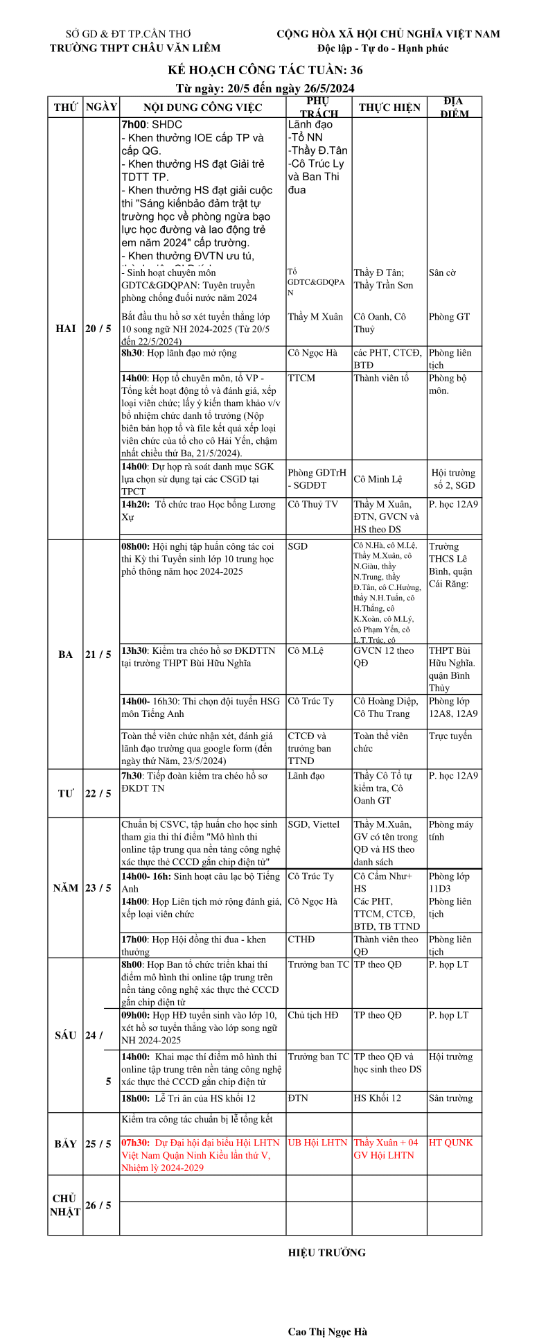 KẾ HOẠCH CÔNG TÁC TUẦN: 36