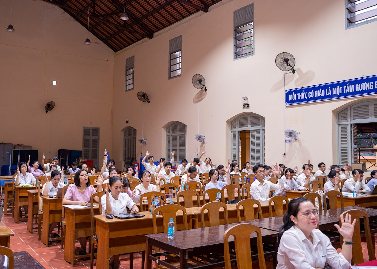 Phát huy tinh thần dân chủ, đại biểu tham dự Hội nghị đã tích cực thảo luận, đóng góp ý kiến, đề xuất giải pháp nhằm nâng cao đời sống cho VC-NLĐ… Cũng tại Hội nghị Ban thi đua đã tổng kết phong trào thi đua; Báo cáo kết quả thi đua và khen thưởng năm học 2023-2024 nhà trường đã đạt được: Tập thể lao động xuất sắc – Bằng khen của UBND TP; Tổ chức cơ sở Đảng Hoàn thành xuất sắc nhiệm vụ; Công đoàn: Hoàn thành xuất sắc nhiệm vụ – Giấy khen Công đoàn ngành; Đoàn TNCS HCM: Hoàn thành xuất sắc nhiệm vụ – Bằng khen của Thành Đoàn. Với 97 cá nhân Lao động tiên tiến; 26 Chiến sĩ thi đua cơ sở; 87 Giấy khen của Sở GD&ĐT; 01 Bằng khen của Bộ GD; 03 Bằng khen của Thủ tướng.