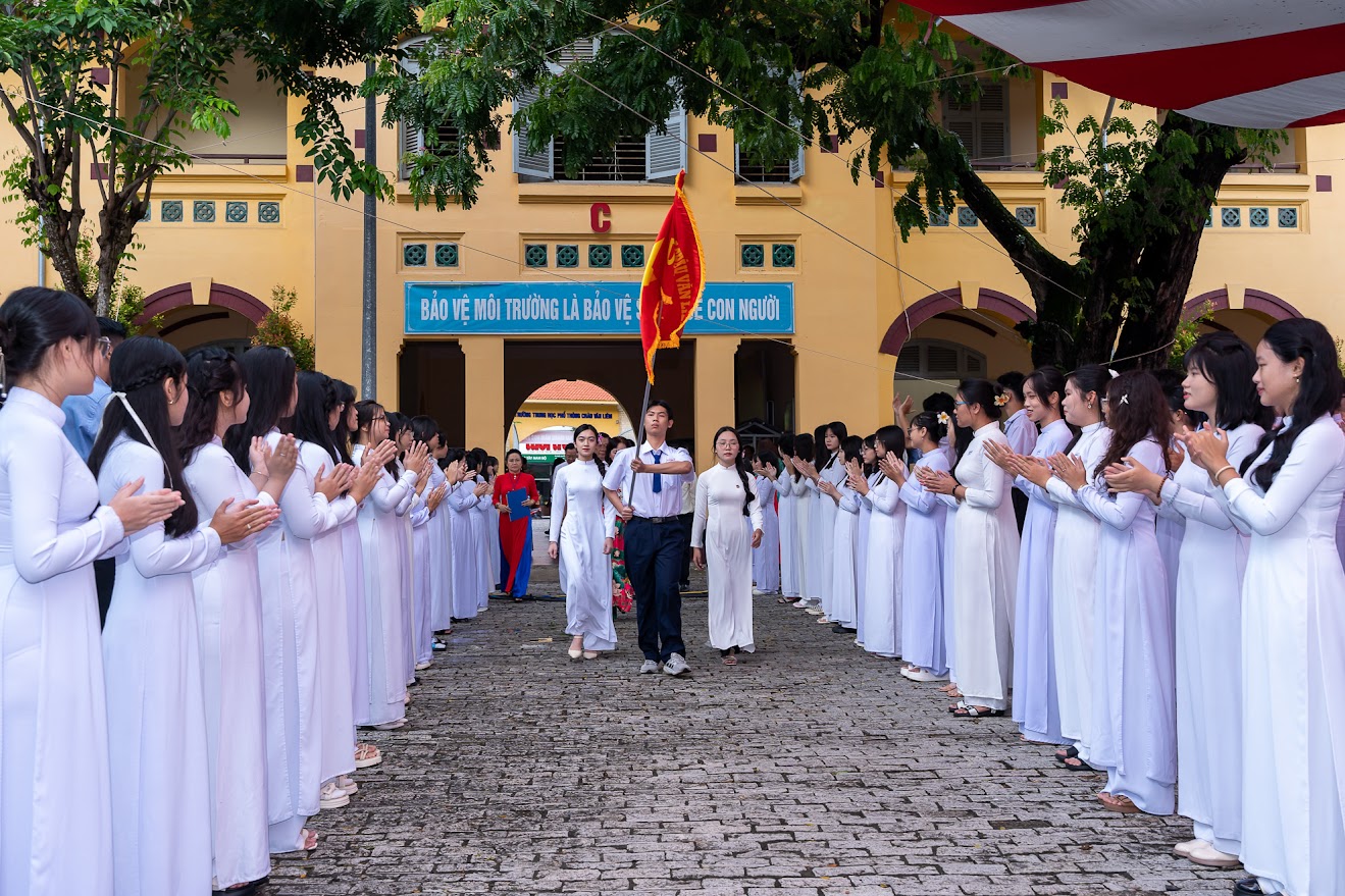 Đội hình học sinh lớp 10 đã tiến vào sân lễ